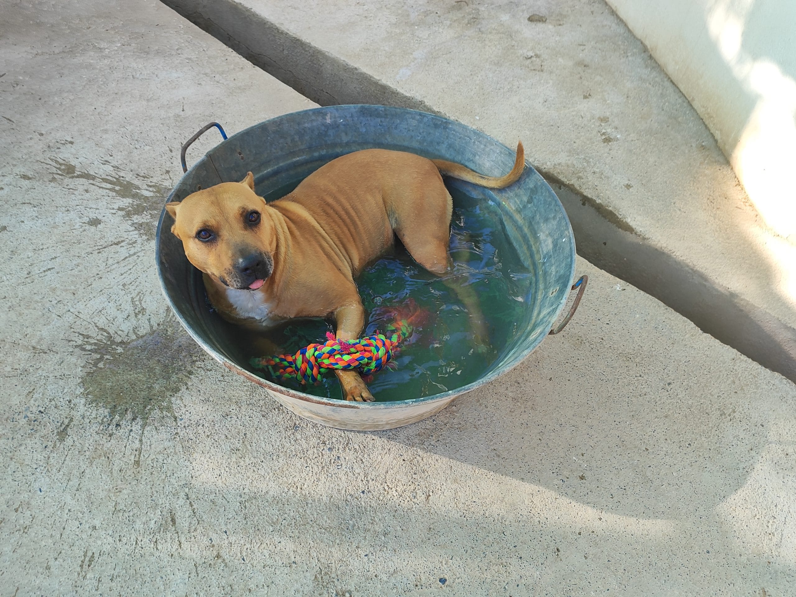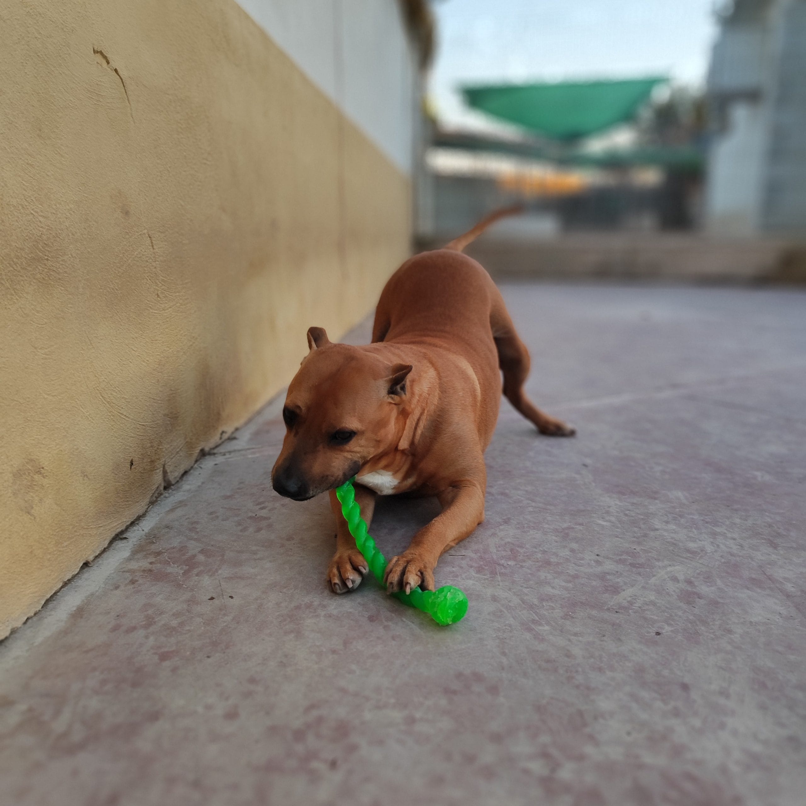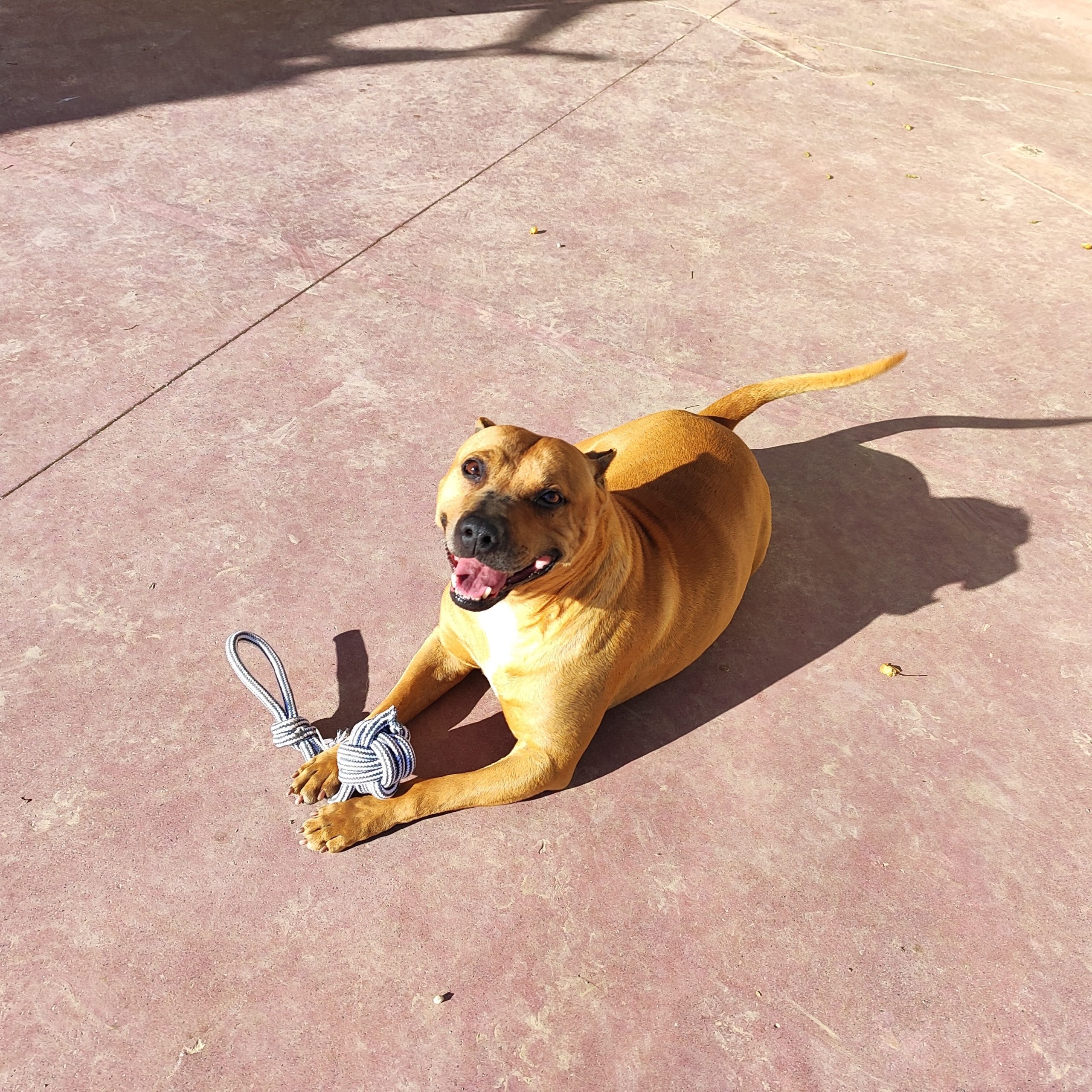 Boop es un perro mestizo tipo Staffordshire Bull Terrier de aproximadamente 10 años, que lleva gran parte de su vida esperando una oportunidad en el refugio. Es un perro muy cariñoso, juguetón y con un carácter noble, ideal para quienes buscan un compañero leal dentro de una adopción responsable en España.