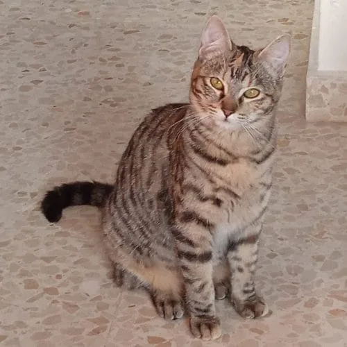 Arya gata en adopción es una gata tranquila, sensible y algo reservada al principio. Como muchos gatos rescatados, necesita un pequeño periodo de adaptación, pero una vez gana confianza muestra su lado más dulce.