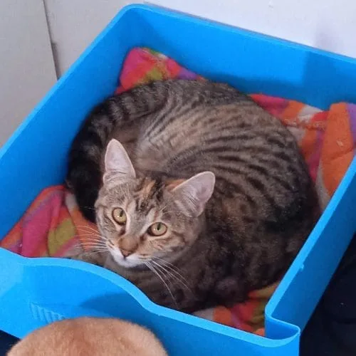 Durante su estancia en acogida, Arya ha ido evolucionando favorablemente, aprendiendo a confiar y a convivir en un entorno seguro. Actualmente está completamente recuperada, es negativa a FIV y FeLV, y está preparada para encontrar un hogar definitivo dentro de la adopción responsable.