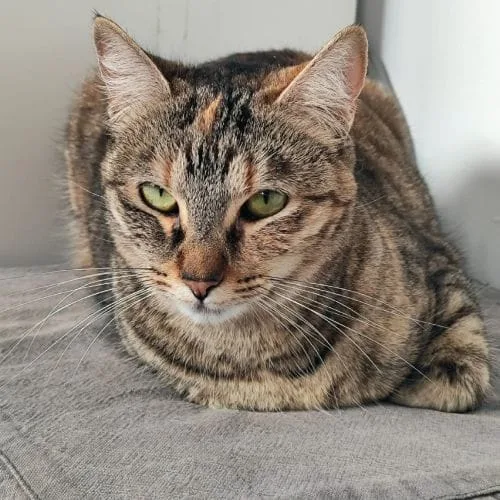 Es una gata que disfruta de la calma, de los espacios seguros y de la rutina. Le encanta jugar con otros gatos, compartir momentos de descanso y observar su entorno desde lugares tranquilos.