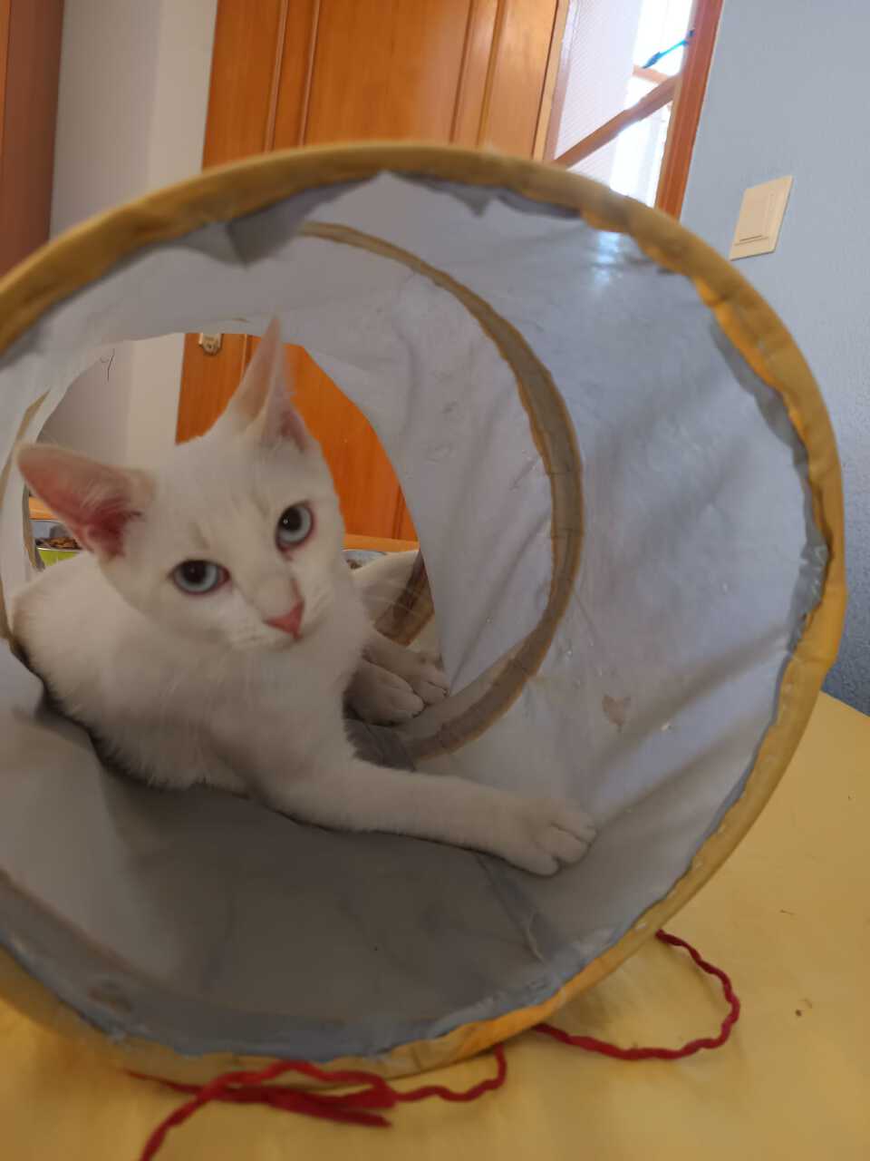 Kiwi es un gato joven, actualmente en casa de acogida desde septiembre de 2025, que forma parte de una camada rescatada de la calle. Es un gato cariñoso, juguetón y sociable, ideal para familias que busquen un compañero dulce y activo.