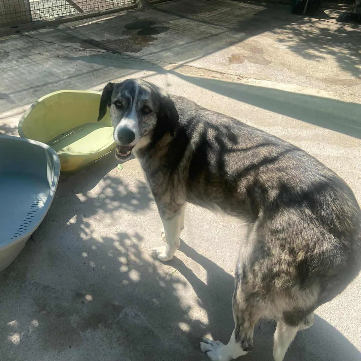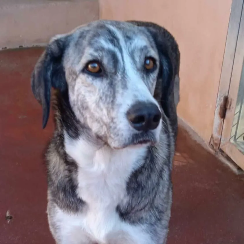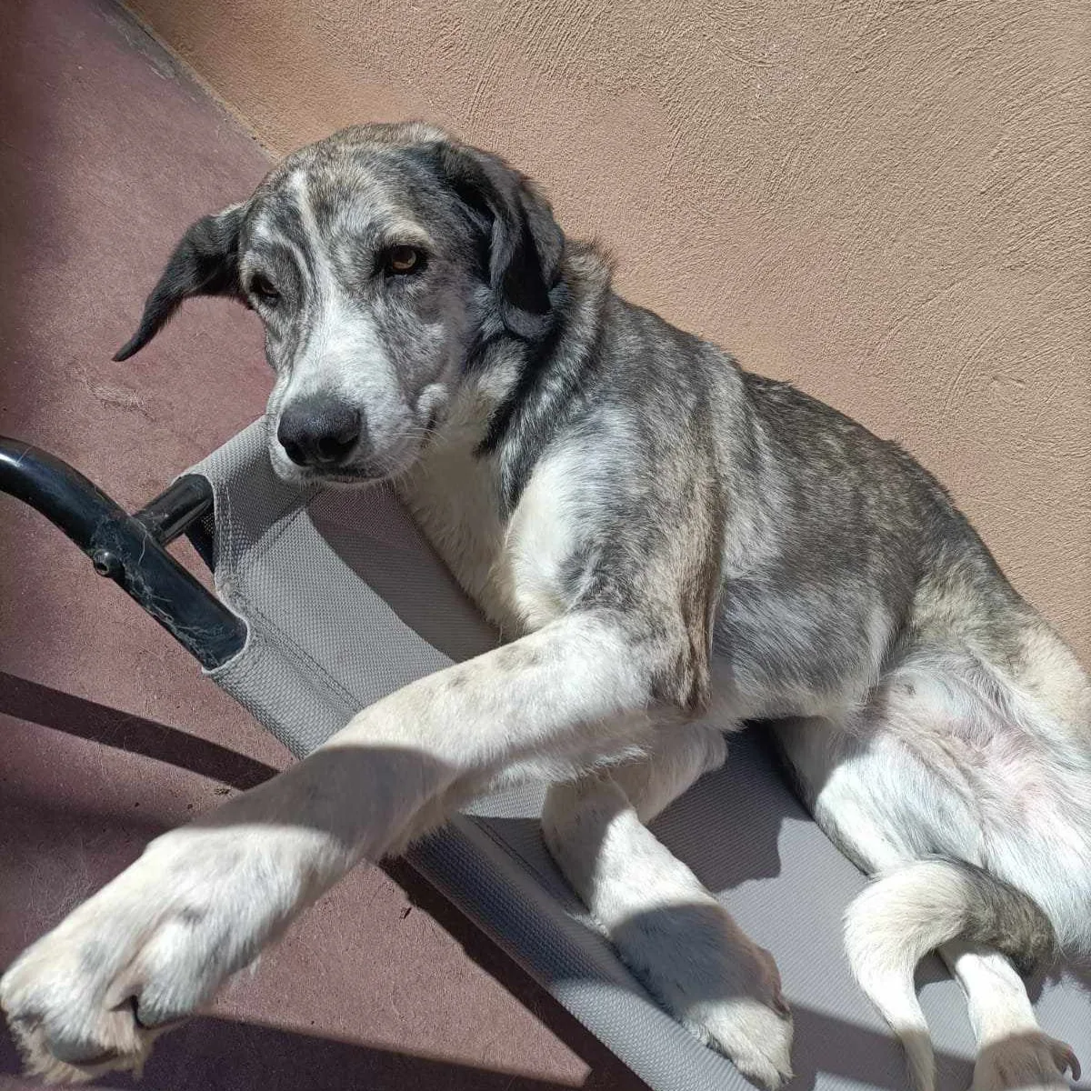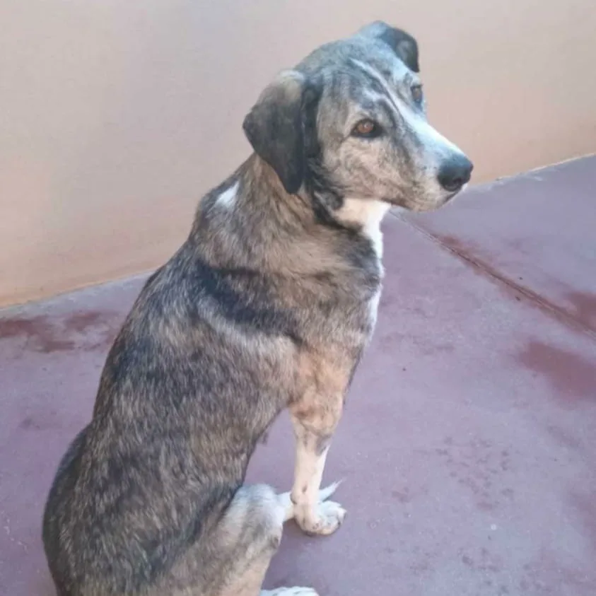 Vesta es una perra en adopción que fue encontrada junto a otra perra en medio de la nada. Ambas estaban en estado muy delgado, sin identificación y con claros signos de abandono prolongado.