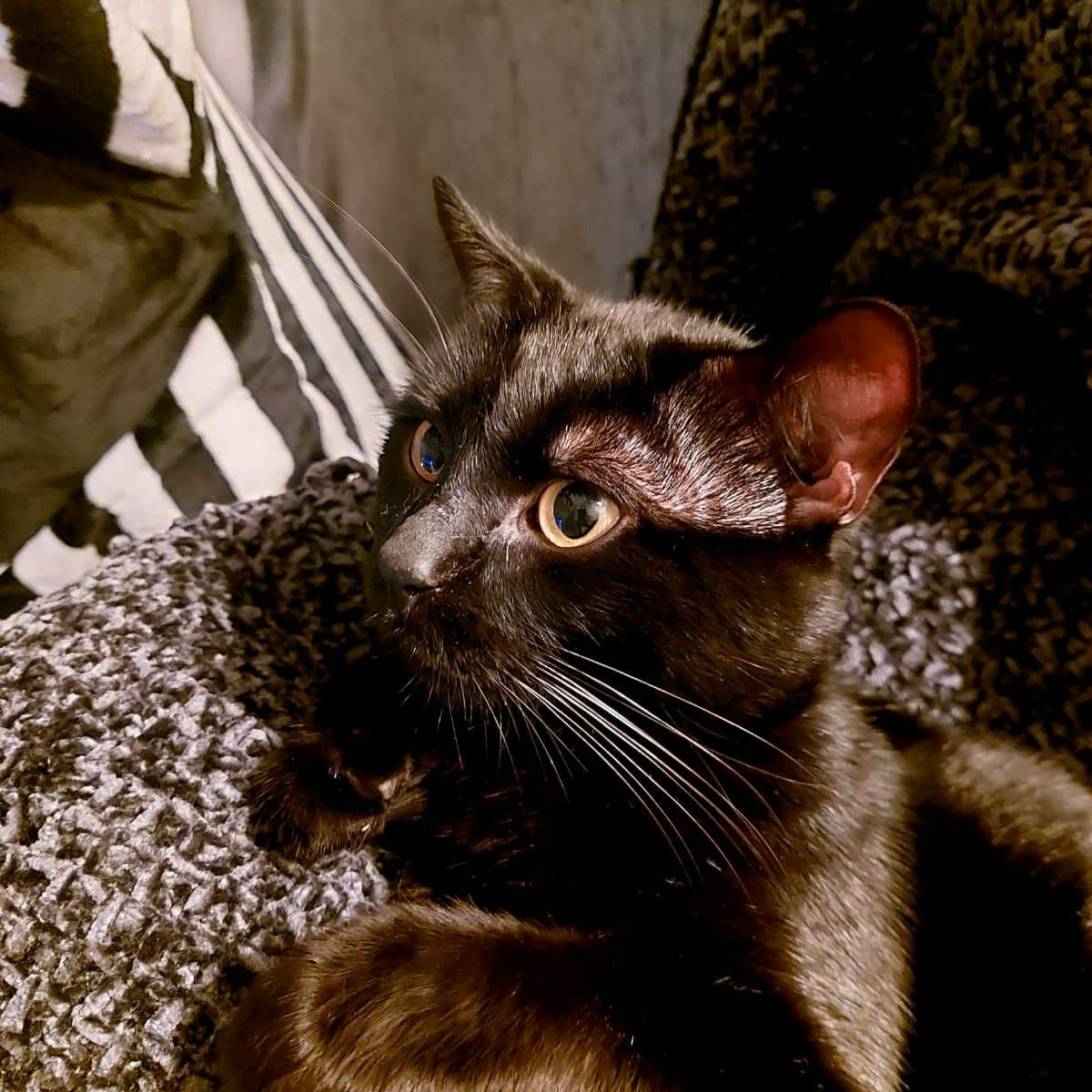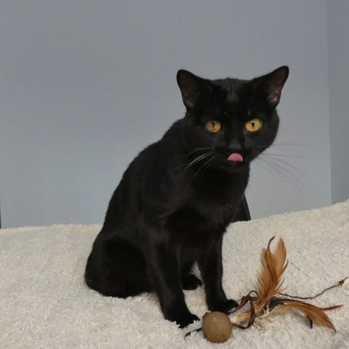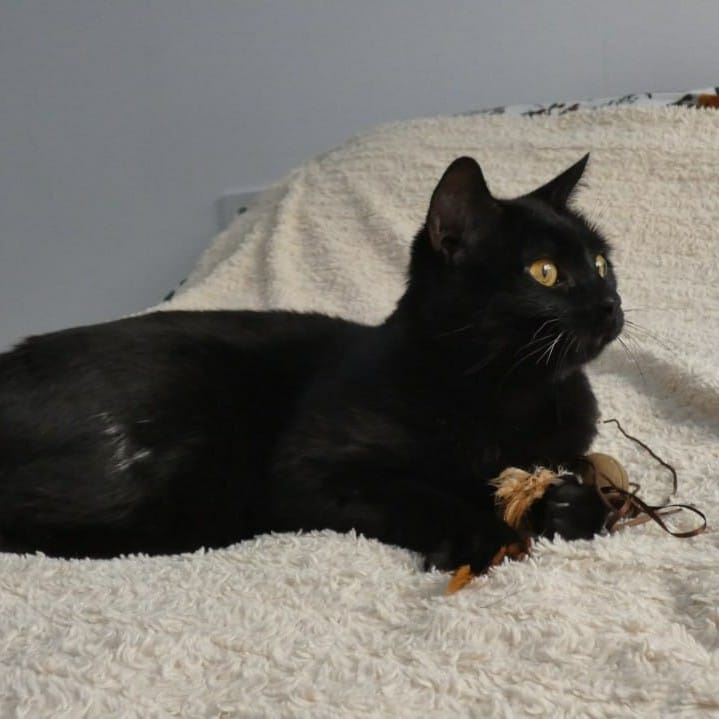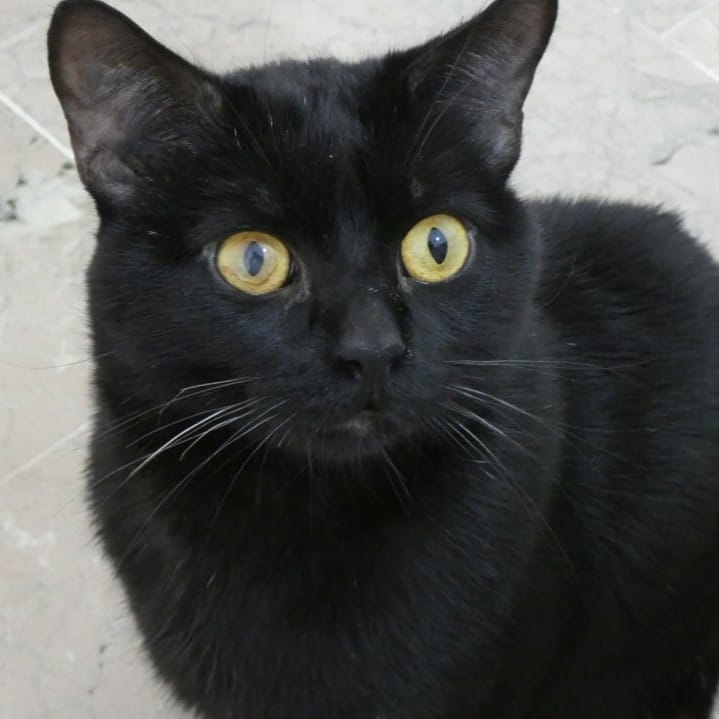 Salem, gato joven negro y muy cariñoso en adopción responsable