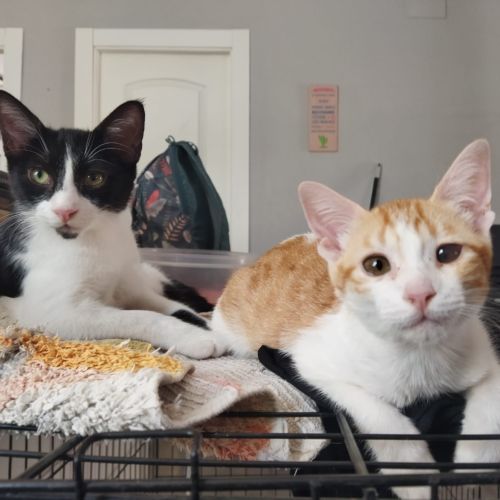 Thanos y Nébula fueron rescatados cuando apenas tenían un mes de edad, encontrados en la puerta del refugio. Al ser tan sociables, no dudamos en acogerlos y brindarles el cuidado necesario. Ambos estuvieron bajo tratamiento veterinario por una infección ocular, y aunque Nébula quedó con una pequeña cicatriz, su visión está completamente normal. Ahora están listos para encontrar un hogar que los reciba con los brazos abiertos.